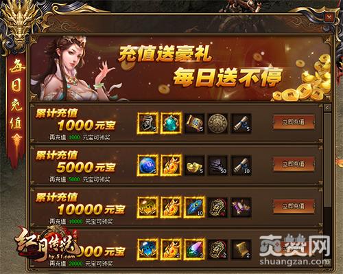第二个就是当日的充值奖励,第一档的充值10元就可以领到了,开服前7天送的奖励都不一样,第8天开始礼包内容如下: