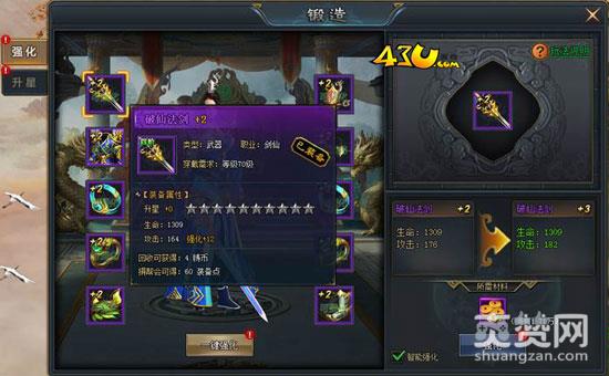 43u《洪荒主宰》中每一位修炼者都梦想着拥有最牛X的装备,所以他们击杀各种BOSS,收集材料、装备,并通过锻造系统让自己的装备得到提升。玩家可通过锻造(快捷键U)查看锻造界面,锻造系统主要有强化和升星两种方式,强化课提升装备属性,升星可提升装备品质。