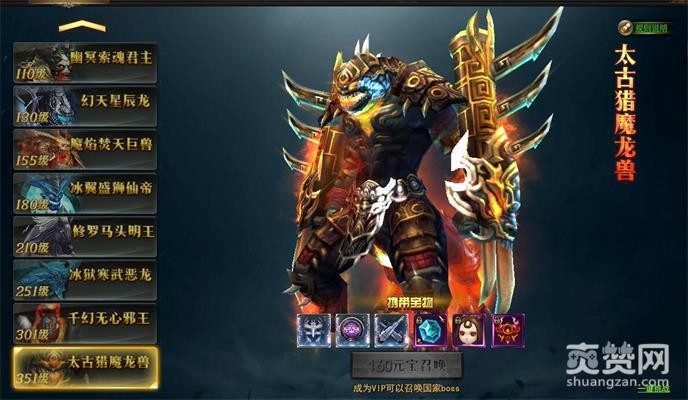 挑战最强上古BOSS赢取海量终极神装更有超萌精灵宠物等你来拿,成为VIP可以独自召唤国家BOSS没人和你抢怪单挑BOSS装备全是你的,BOSS难度较高玩家单人挑战需要斟酌好自己的战力,避免召唤出来打不过那可就尴尬了,更有超稀有神变武器助你获得全新龙神属性,打开新世界大门!