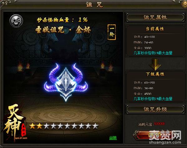 在37《灭神》中,诅咒系统分为多个等阶,等阶越高对BOSS造成的伤害越高。玩家可以自主升阶,每一阶有十星,升满十星后会进入下一阶。