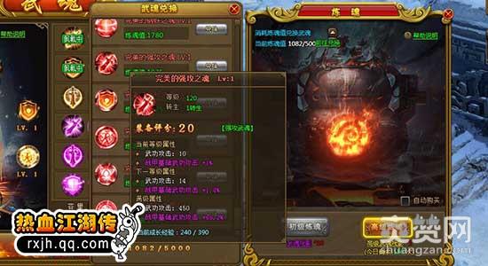 天神八窍归一,炼魂无限奥义。腾讯平台《热血江湖传》武魂炼魂玩法全面开放,六阶段48种不同武魂形态,全方位感受武魂带来的强悍战力!更有超爽魂值兑换,心仪武魂百分百自由获取,尽享武魂无限魅力!腾讯《热血江湖传》现于QQ空间、QQ游戏大厅同步火爆开服中!