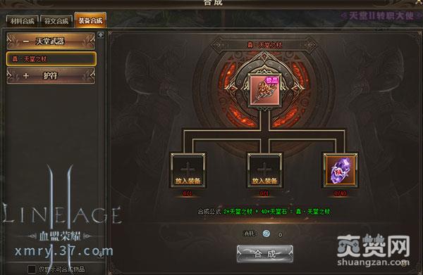 装备合成界面中,有标明每种道具的合成公式,可供玩家参考。天堂武器的合成,需要多把天堂武器和天堂石,天堂石可通过天堂盛典活动获得。