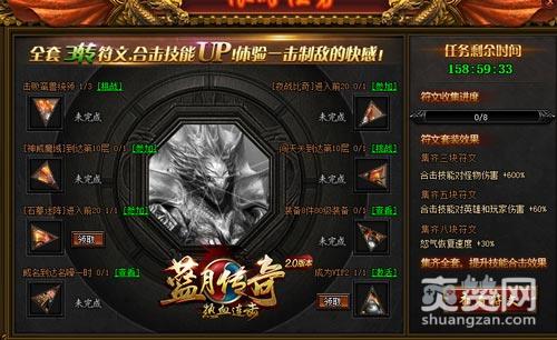 最后还有一个细节是,在我们做任务凑齐70级符文的时候,一定不要转生,如果你提前转生了,那么你再做符文任务的时候,就很难通关精英任务。光凑齐符文是不够的,还要继续做任务让符文升到更高的等级,只要愿意在游戏里花时间,每天做完闯天关、石墓烧猪、押镖等各种活动与任务,那么2天内做出一套三转符文是完全没问题的。