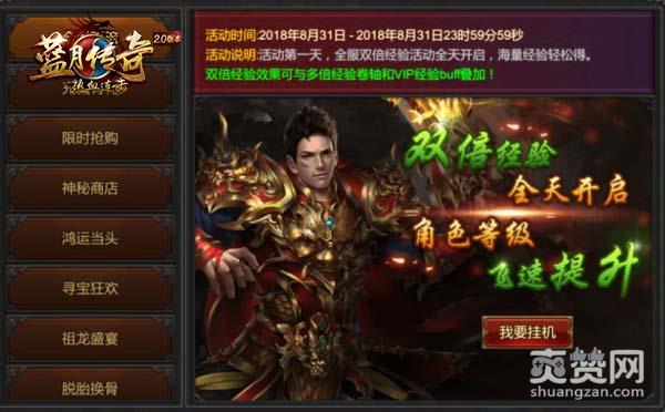 有活动,更有要福利给玩家们助兴,8月31日~9月2日,《贪玩蓝月》第二波秋季回馈福利来袭,八大惊喜活动,第一天,全服双倍经验活动全天开启,海量经验轻松得。玩家期待已久的神秘商店再度开启,各种稀有材料超低价出售,不容错过!而且在龙族寻宝中,每寻宝5次,可额外获得1点祖龙之力,获取无上限,寻宝次数达指定次数,更有额外大礼。同时,帮会改名卡、角色改名卡和英雄转职卡限时大放价,你还在等什么呢?