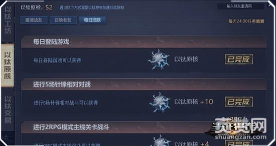 每日在游戏中完成各种指定的任务来获得以钛原核。
