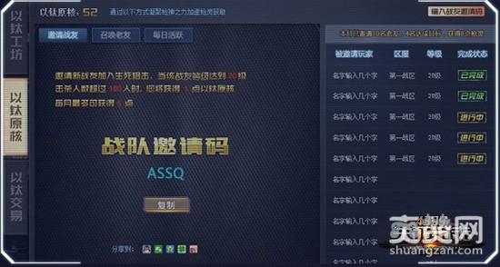 点击以钛原核界面上的邀请战友按钮,显示邀请战友界面。