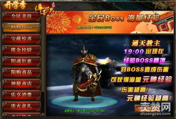 2.活动中,玩家对BOSS造成的伤害,将在活动结束后转换成元神经验并发放;