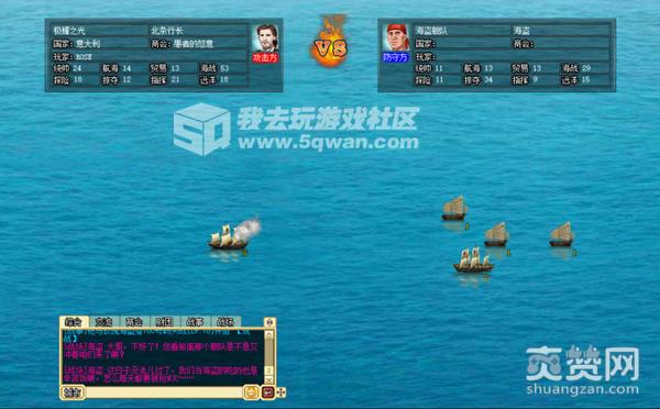接取任务之后,航海家的舰队就会自动进入海上战场。进入战场之后,航海家既可以实时观摩战斗,也可以离开战场,任由自家舰队与海盗在战场中自由战斗。两个选择的战斗结果都是相同。因此,当航海家忙于其他活动时,也可令空闲的战斗舰队到剿匪官处接取剿匪任务进行训练。