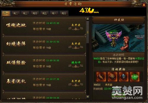 第一个活动是神威狱,击杀精英获得神威狱通行证,通关10层可以获得巨额奖励。