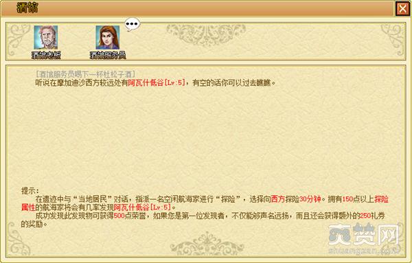 阿瓦什低谷是非洲大陆最重要的古生物遗址之一,该遗址有400万年以前的远古人类化石。它在距离摩加迪沙较远的地方,探险属性值在150以上的探险家可以发现这里。当探险家身处于摩加迪沙时,朝着西边出发并移动30分钟即有机会发现目标。