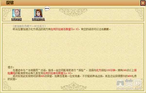 拉利贝拉岩石教堂有“非洲奇迹”之称,是古代埃塞俄比亚王国的文明产物。它在距离摩加迪沙很远的地方,需要经验丰富的探险家去发现。在探索拉利贝拉岩石教堂时,探险家至少要拥有240点探险属性,并且向北边移动120分钟才有机会发现目标。在 游戏王国《海洋时代2》发现目标后,探险家可获得大量荣誉与经验。