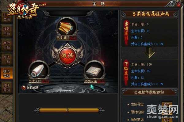二是新增“宝物—披风”, 玩家激活“角色灵魂”后开放“宝物—披风”。披风需要集齐“灵魂绸缎”、“灵魂天丝”、“灵魂织锦”三种道具才可激活,三种道具均可在“全民披风”活动中领取大礼包获得。披风升级需要注入“灵魂精华”,提升披风可获得“生命”、“生命恢复”、“闪避”、“受合击伤害减少”的极品属性哟!