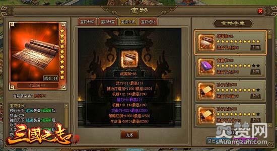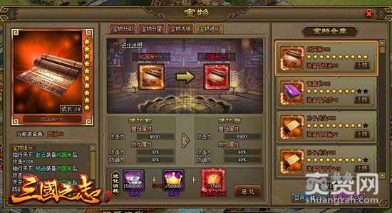 腾讯《三国之志2》中的宝物是武将装备之一,不同武将都有其对应的专属宝物,装备后可以获得额外的属性加成。最新版本的宝物系统包含宝物升级、宝物升星、宝物洗练、宝物进化共四种强化功能。