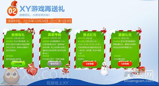 欢天喜地来跨年,XY带你抢红包!2016年还有最后一两天就要跟我们说拜拜了,各位小伙伴已经准备好迎接新年的钟声么?值此新年到来之际,XY游戏给大家准备了全天的整点红包,大家快准备好,一大波红包雨即将来袭,注意哦,这不是演习!