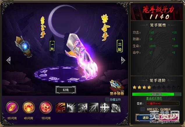 四大神兵助你称霸武林,每个神兵都可以附加攻击、防御、生命以及命中率、神兵可以通过进阶来激活更多属性以及神兵技能,到达一定层次的神兵可以使用稀有材料提升百分比高额属性,培养好神兵将是你战斗致胜的关键!