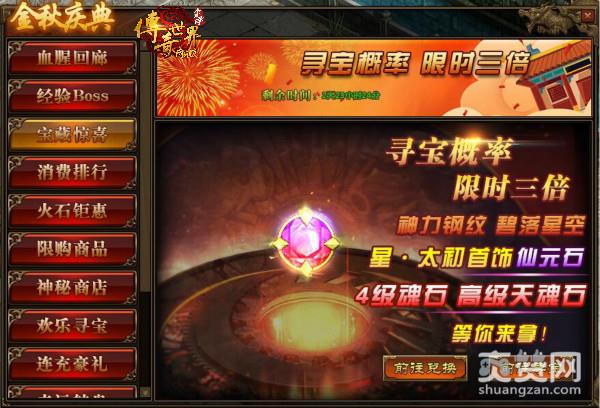 活动期间,玩家寻宝概率翻倍,极高几率获得星太初首饰,仙元石、碧落星空,神力特戒钢纹,高级天魂石以及4级魂石。