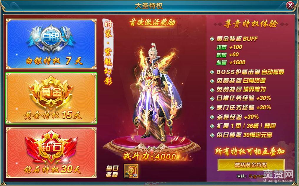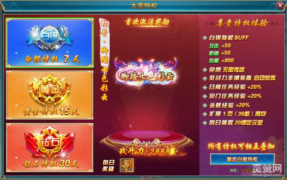 9、参与百倍返利活动的玩家激活特权后可使用永久激活卡永久激活白银仙尊特权;特权有效期:7天