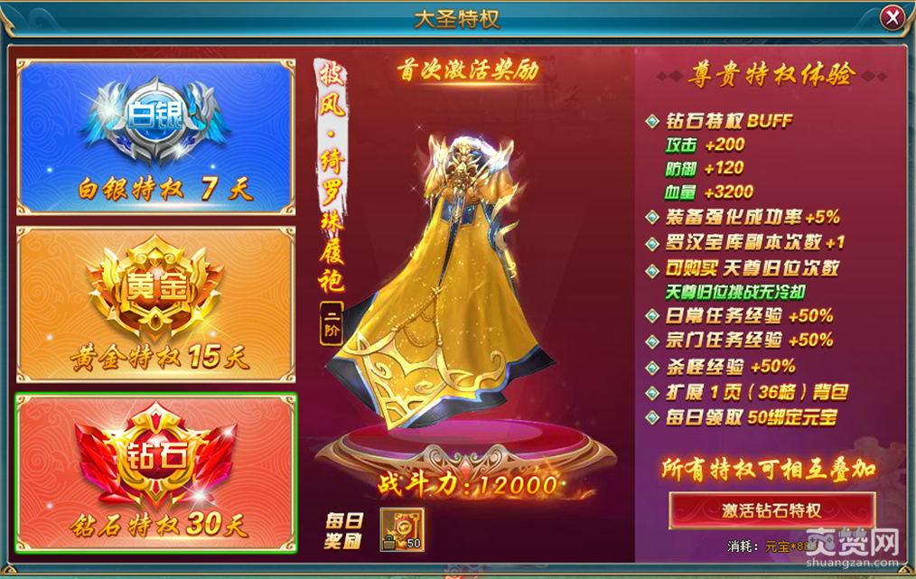 9、天尊归位可购买次数(挑战无冷却时间);特权有效期:30天