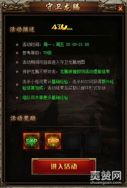 龙腾,代表了一个族群的信仰,为了守卫龙腾,无数勇士前仆后继,用毕生所学抵抗侵略之人!43u《传世永恒》每周一、五开启守卫龙腾活动,玩家们需要在此期间保护龙腾不受攻击,捍卫龙腾的荣耀就交给你啦!
