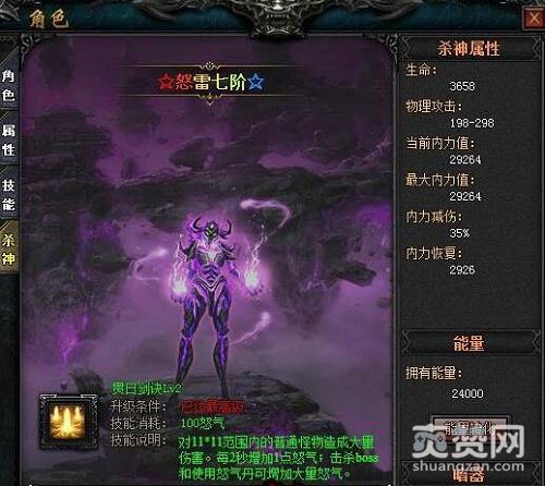 杀神是923yx《七杀》中的一个战力系统,传说被杀神附体的人都能迅速提升战力,不过首先要消耗一些经验。杀神系统可以额外增加内力值、内力减伤,还可积攒怒气来一发秒杀全屏的必杀技,宛如杀神降临。