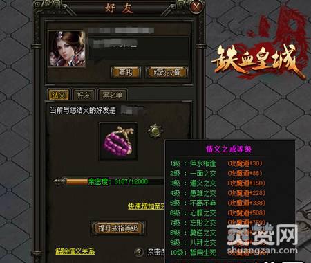 古有桃园结义、管鲍之交让人叹一句兄弟情深,如今亦有皇城英豪、肝胆相照的好兄弟为彼此赴汤蹈火在所不辞。萝卜玩《铁血皇城》结义系统赋予你兄弟之间的情义之证。当两个人账号人物达到80级,便可由一方发出结义请求,另一方同意后便视为结义成功。玩家结义成功后可在好友面板领取情义之戒。