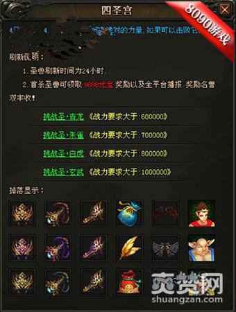 挑战四圣宫门槛是比较高的,玩家需要达到六转的转生等级,并且战斗力要达到一定的要求,才能够进入圣宫,挑战圣兽。当然光是达标的战斗力只说明你有战胜圣兽的基础实力,并不意味着你就能刷boss了,战力稍低的玩家还是需要通过卡怪的方式才能把boss顺利击杀,每一个boss都有独特的技能,想要卡怪必须对boss的技能了若指掌。