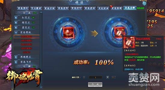 腾讯《御魂九霄》的合成分解功能都位于游戏的铸造界面中,合成包括红宝石、绿宝石、蓝宝石、装备图纸、器魂精石、装备飞升六大分类,分解仅包括特殊材料分解一个种类。使用合宝石合成功能,消耗三个低级宝石可以百分百获得高级宝石。使用红装碎片可以合成各部位装备的高级图纸。使用万能器魂精石则可以合成多达十五种的不同器魂精石。