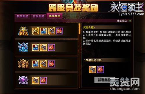9377《永恒领主》“跨服竞技”活动玩法奖励: