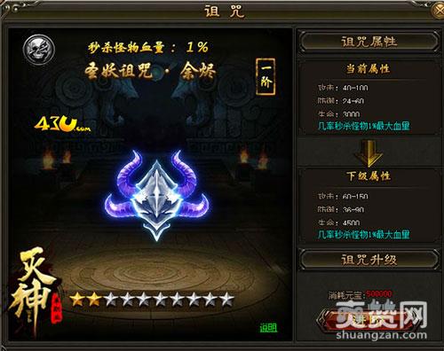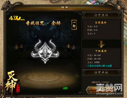 43u《灭神》中诅咒系统分为多个等阶,等阶越高对BOSS造成的伤害越高。玩家可以自主升阶,每一阶有十星,升满十星后会进入下一阶。而且诅咒系统是一个非常良心的系统,诅咒升级只需要花费元宝即可。元宝作为游戏内流通最频繁的货币,通过装备回收、BOSS掉落等多种途径可以获得。