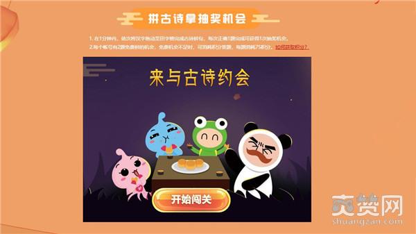 在古代,中秋节有赏月吟诗的习俗,现在37游戏就来考考你,关于中秋的诗句你还记得哪些?“拼古诗”玩法规定在1分钟内,玩家必须依次将汉字拖动至田字格完成古诗拼句,每次正确1题完成可获得1次抽奖机会。每个账号有2题免费拼的机会,免费机会不足时,可消耗积分答题,每题消耗75积分。