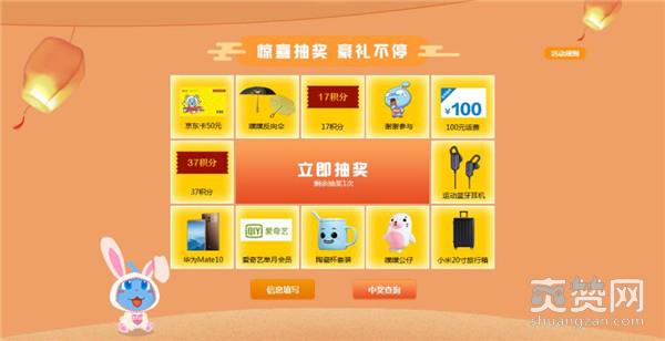 在活动的最后,怎能少得了抽奖这一环节?此次37游戏将准备送给大家的有:华为Mate10、100元话费、京东卡50元等等丰厚奖品,听起来是不是很心动?快来抽奖吧!