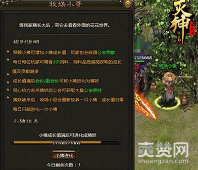 猪妖被杀后,牧场小哥会重新放养只小猪,成长值归零。每日只能进化一次小猪。