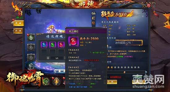 器魂拥有十分完善的养成体系,玩家不但可以对器魂升级升星,还能为器魂镶嵌魂石。器魂达到三阶后可以开启三个魂石镶嵌槽位,同时镶嵌三个紫色以上品质魂石可以激活魂石印记效果,玩家角色将获得更多额外属性加成。
