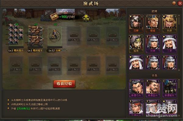 俗话说养兵千日用兵一时,训练好自己的士兵才能在战争中获得胜利,玩家可以在练兵场将武将和士兵放入每过一定的时间都可以获得相应的经验值来提升武将和士兵的等级,武将和士兵等级和熟练度提升力就可以使用更强的战斗技能,以及获取更高的属性!