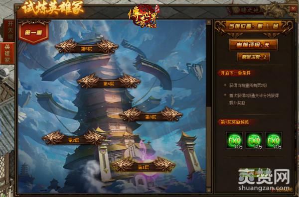 开服45天即可开启试炼英雄冢,玩家可在中州皇城(190,190)通过守塔仙翁NPC进入。