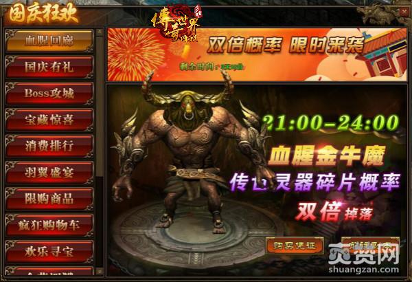 9月27日-9月30日活动期间,玩家参与“多人副本-血腥回廊”,获得“传世灵器碎片”的概率翻倍。