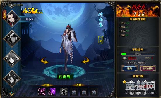 侠客可通过游戏内活动获得激活卡。每个侠客还有独特的天赋技能,侠客越高级,技能越多,侠客培养可以给角色少量的攻防生加成。