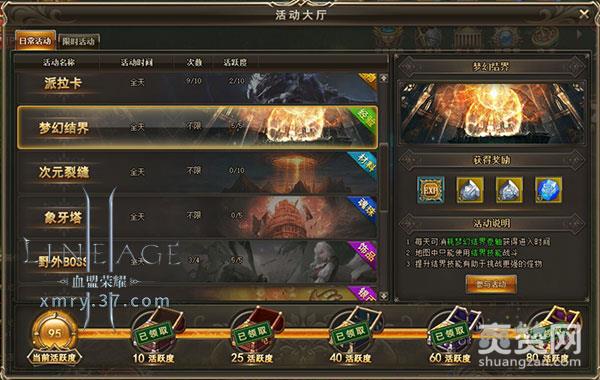 37《血盟荣耀》将《天堂2》中的梦幻结界玩法赋予全新的生命力,在这个神秘的异次元世界中,玩家需要和各种战斗难度爆表的怪物斗智斗勇,以求得继续在梦幻结界生存下去的机会。