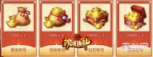 任意新老平台用户均可在活动页面进行账号鉴定,根据账号注册时间、所玩游戏数量、充值等综合要素评定账号级别:黄金、铂金、钻石、王者……玩家可凭账号级别获取相应数量的元宝,37《沙城战神》公测后元宝将发放至账号创建的第一个游戏角色的邮箱中。