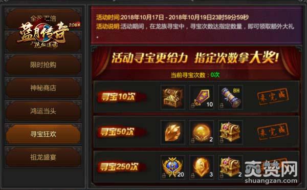 贪玩《热血连击》秋季回馈活动期间,在龙族寻宝中,每寻宝5次,可额外获得1点祖龙之力,获取无上限,寻宝次数达指定次数,即可领取额外大礼!快来寻宝吧!