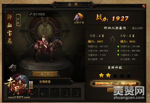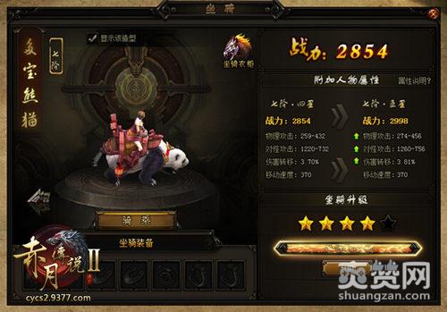 除此之外,更有坐骑皮肤供玩家选择,加大坐骑属性之余还能变得更加狂炫酷霸拽哦!目前,9377《赤月传说2》的坐骑皮肤共有4种,分别是:金玉良驹、赤月主宰天马、赤月主宰战虎、赤月主宰暴熊。每种皮肤不仅形象不同,附加的属性也不尽相同。