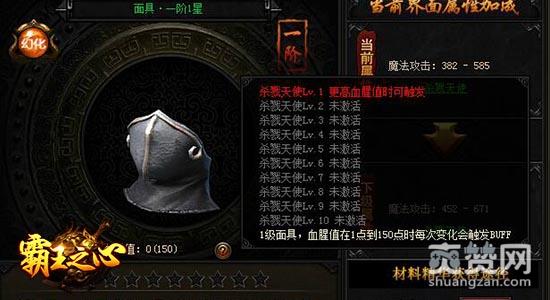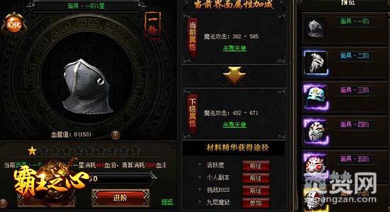 9cb《霸王之心》中的面具是一个全新的养成系统,玩家可以对自身的面具进行培养进阶,最高可进阶至七阶,面具进阶后有各种不同的外观,玩家可以选择心仪的外观进行幻化。