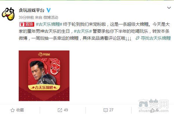 【寿星古天乐独宠《贪玩蓝月》超级锦鲤】