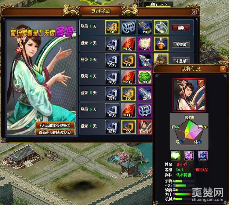 《霸业传》首充1元,即可拿到“★董卓”的金色天将,绝对的物超所值。每天登录后第一件事就是签到,7天更能得到顶级红色神将“★小乔”,千万记得领取,错过一次后悔一年。