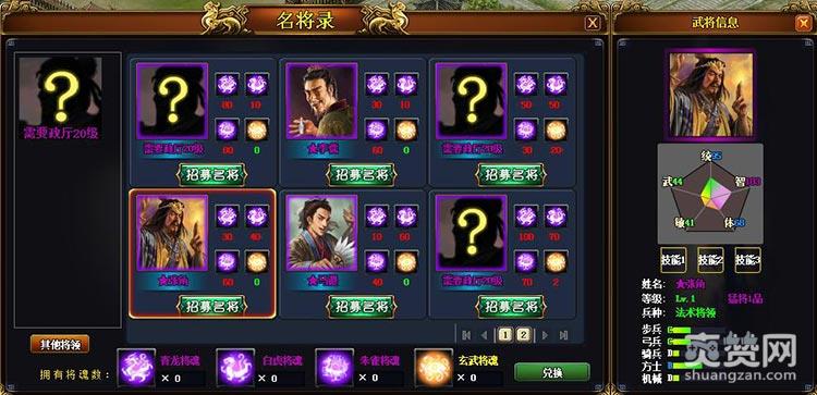 除此之外,通过名将录使用青龙、白虎、朱雀、玄武魂石换取如“★赵云”、“★张角”等名将。某些主线剧情通关后,有机会获得名将。