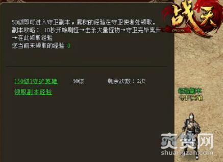 此外,在守护英雄副本中护卫和玩家都不能回血,所以大家要尽量保护好护卫。成功通关后,大家即可获得经验奖励。若花费元宝,可获得的经验奖励还可翻倍,最多可翻八倍。若出副本时未能领取奖励,大家可在守卫使者处领取。