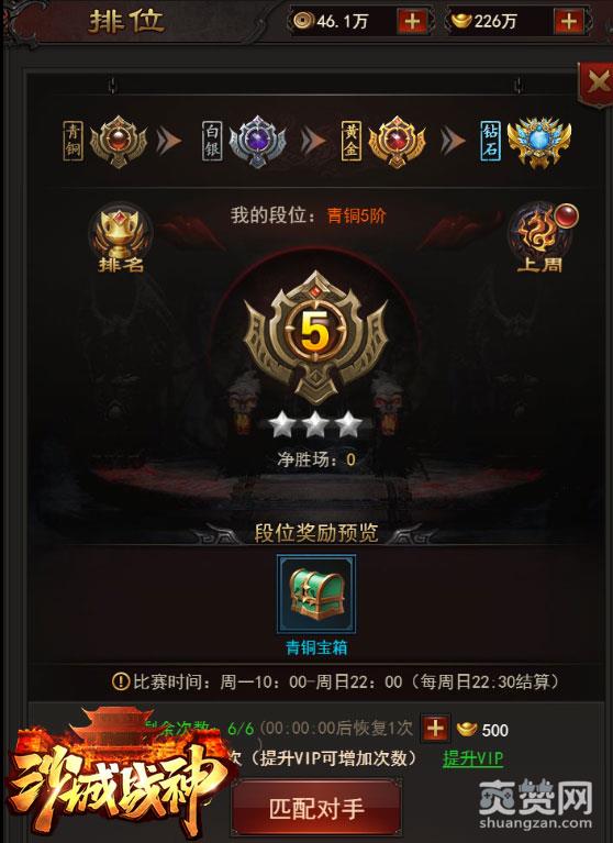 作为37《沙城战神》中最劲爆的PVP玩法,排位战意在激励玩家互相挑战以获取更高排位领取奖励。在进行挑战前,系统将采用合理的匹配机制为你找寻实力相当的对手。