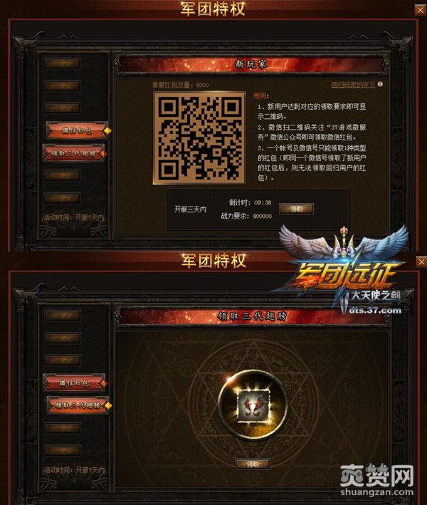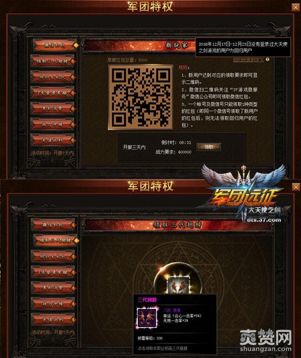 距37《大天使之剑》公测已有两年之久,为感谢玩家长久以来的陪伴,游戏迎来了最新资料片——军团战,该游戏内容不仅增加了许多有趣的玩法,还准备了丰厚的福利送给大家。其中,在2016年12月17日-12月23日没有登录过37《大天使之剑》的老玩家,进驻游戏可秒升400级并送3代翅膀,除此之外,在线十分钟还可扫描二维码领取微信红包。不仅是老玩家,新玩家也能免费领三代翅膀,只要完成任务还能领取现金红包福利噢!