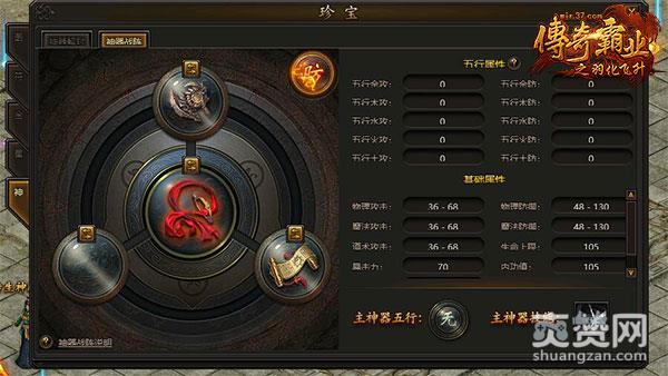 在37《传奇霸业》真正的战斗中,神器可以组成神器战阵,神器战阵最多可同时穿戴4件神器,其中一件为主战神器,主战神器决定了最终生效的神器技能和神器专属器灵的五行类型。