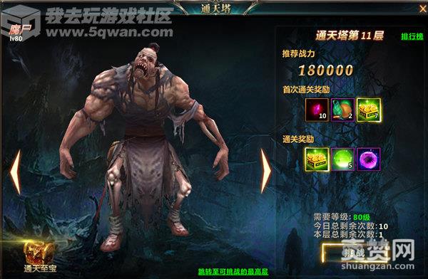 玩家达到一定等级可以开启通天塔系统,每一层首次通关可以获得额外的通关奖励。通关达到一定层数可以获得额外奖励。层数越高,用时越少的玩家可以在排行榜获得更高的名次。